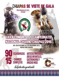 El diputado Alberli Ramos Hidalgo reconoció el impacto positivo para Chiapas por ser sede del LXXII Congreso y Campeonato Nacional Charro Chiapas 2016, el estado se viste de gala y se prepara para recibir por primera vez el del 18 de Octubre al 6 de Noviembre en Tuxtla Gutiérrez. “En este gobierno estamos fomentando y dando espacio a todos los deportes, coincidiendo en que el evento magno de charrería causará impacto entre la población y toda la familia charra. Chiapas quiere recibirlos y mostrar la calidez de su gente, riquezas naturales y arquitectónicas. Así mismo traerá una derrama económica importantísima al llevarse a cabo en nuestro estado tan importante evento” escribió el diputado en su red social.